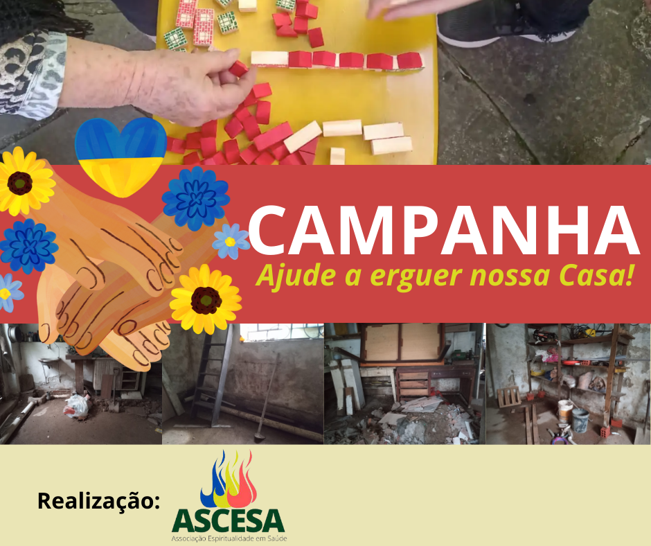 A Associação Espiritualidade em Saúde – ASCESA está, neste momento, empreendendo esforços para a reforma e adequações de espaço físico para a instalação de sua sede, na Rua Borborema, nº 132 – A, no Bairro Partenon. O espaço encontra-se em obras e esperamos, muito em breve, estar de portas abertas para muitos encontros, formações e a realização de projetos alinhados com a missão da ASCESA de trabalhar a Espiritualidade em Saúde em prol da qualidade de vida de nossa comunidade e de todos que nos procuram.